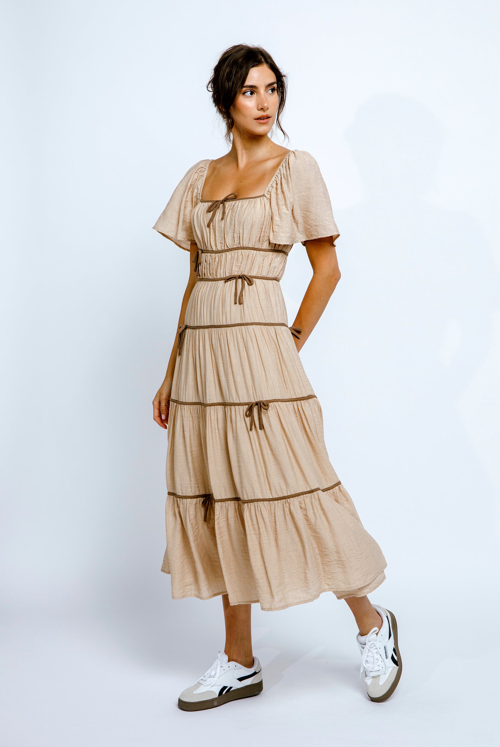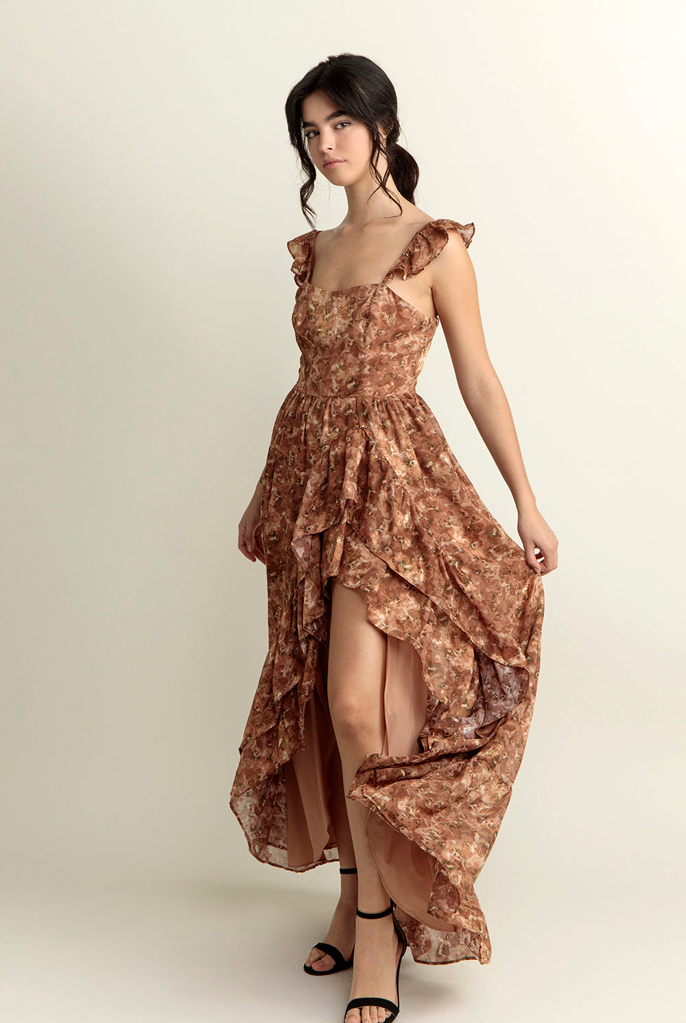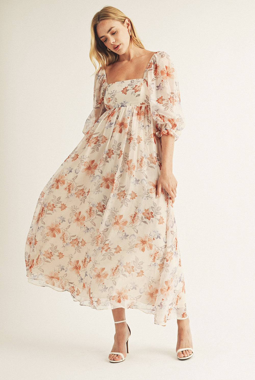 Jolie Romantic Embroidered Flowers Maxi Dress