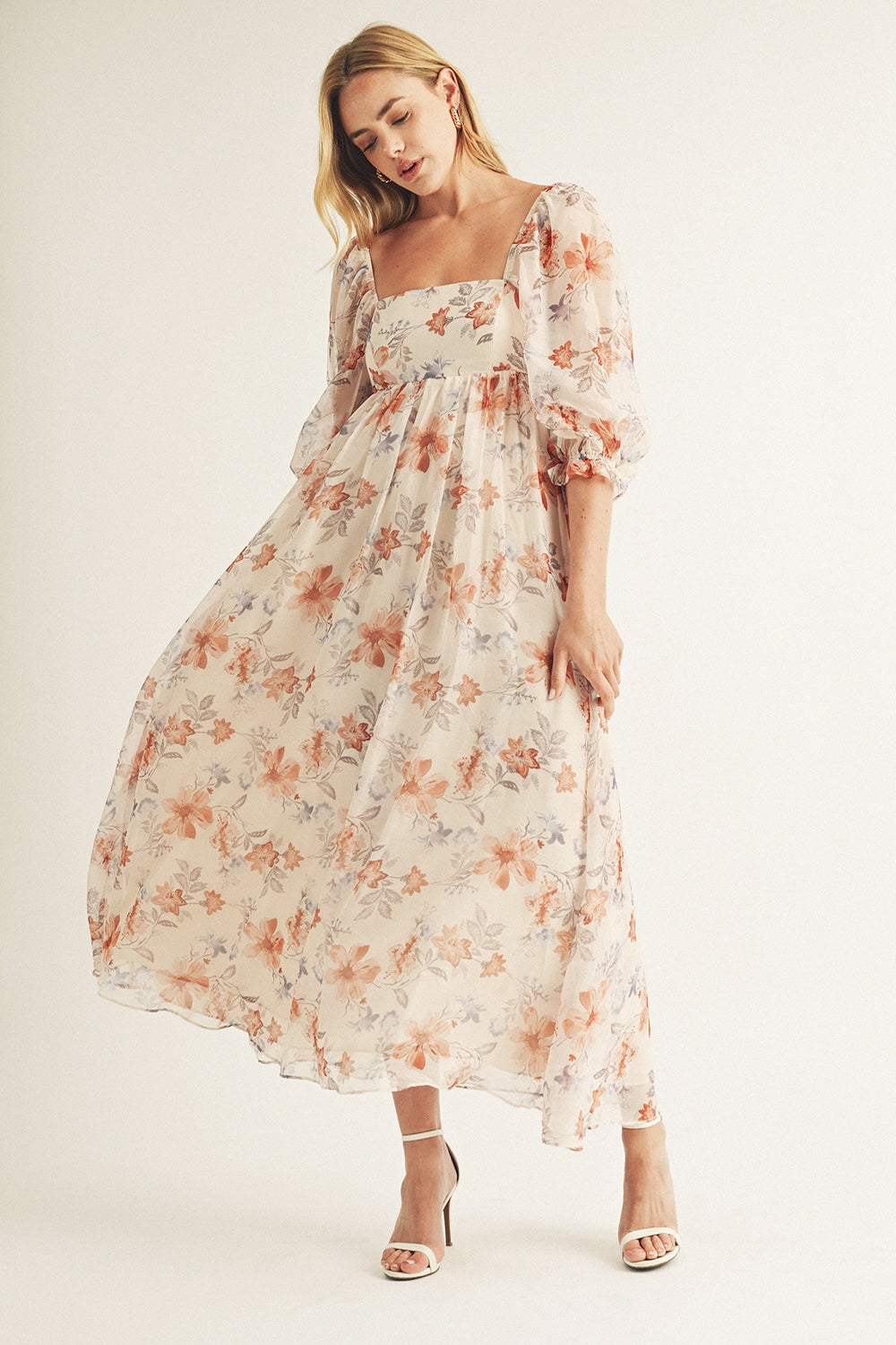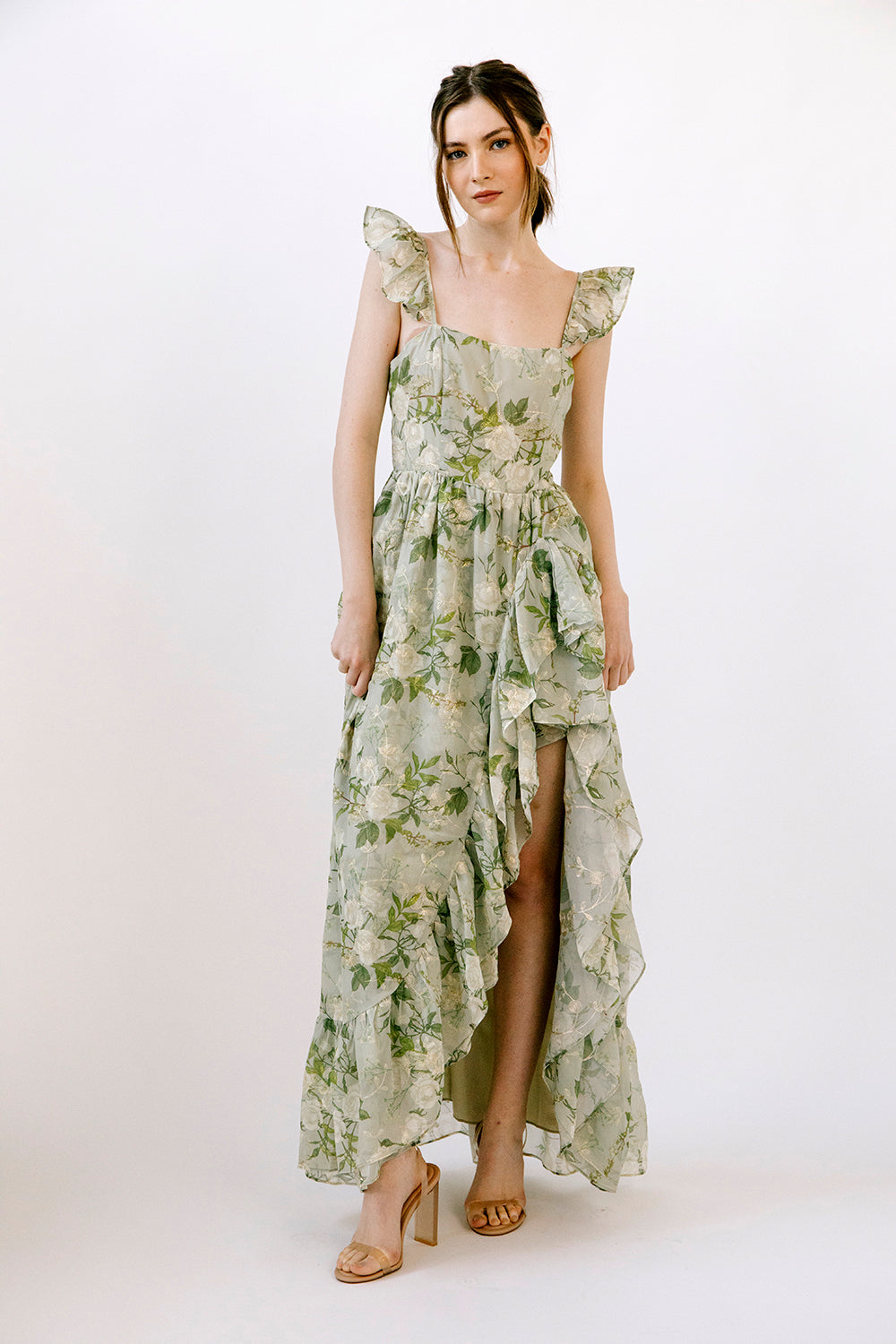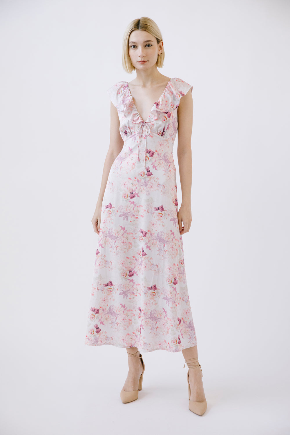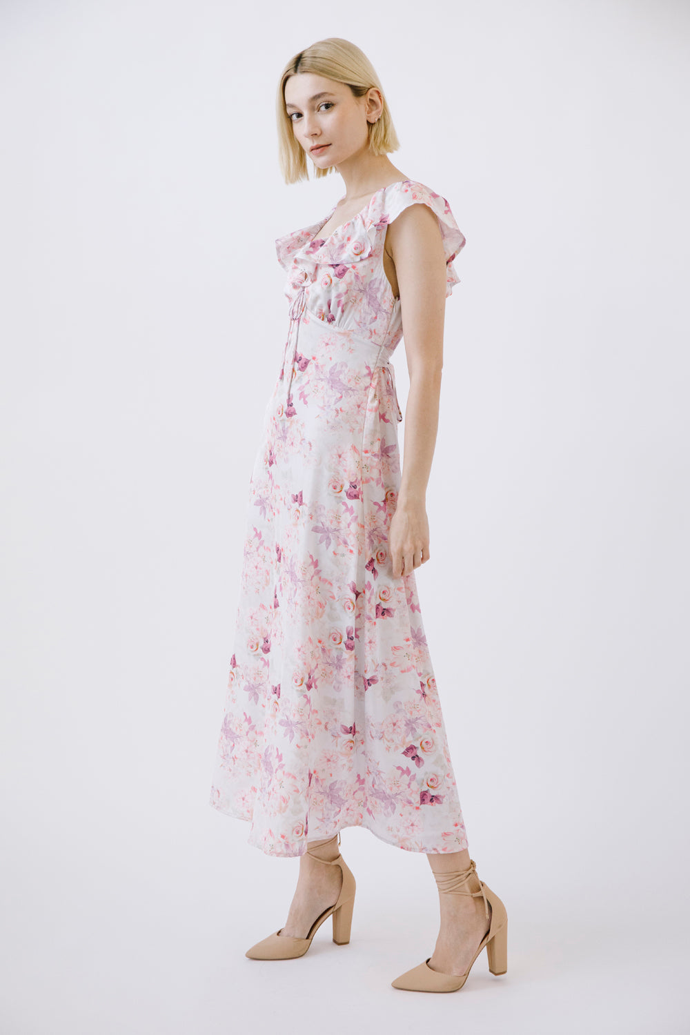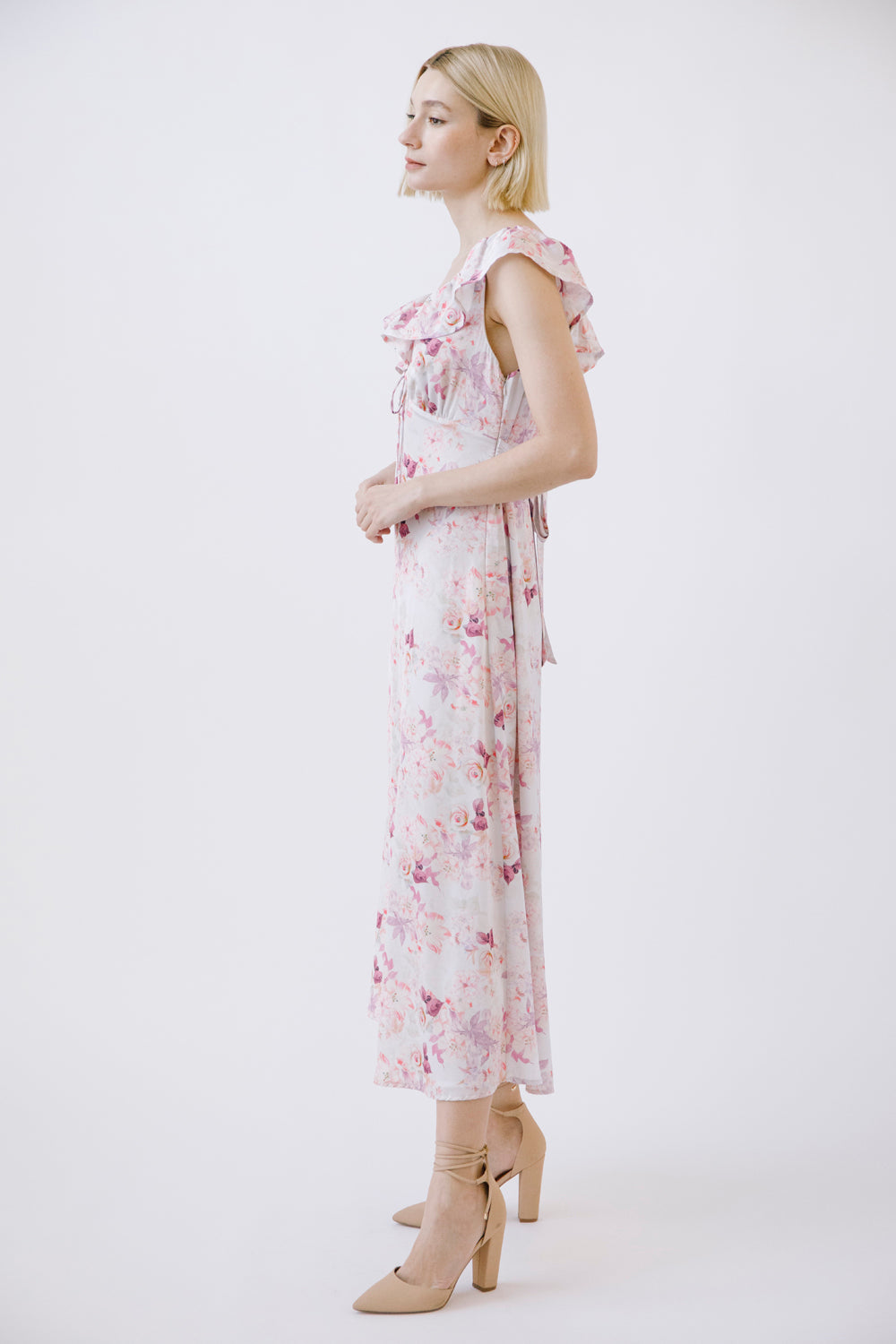 Jolie Romantic Embroidered Flowers Maxi Dress