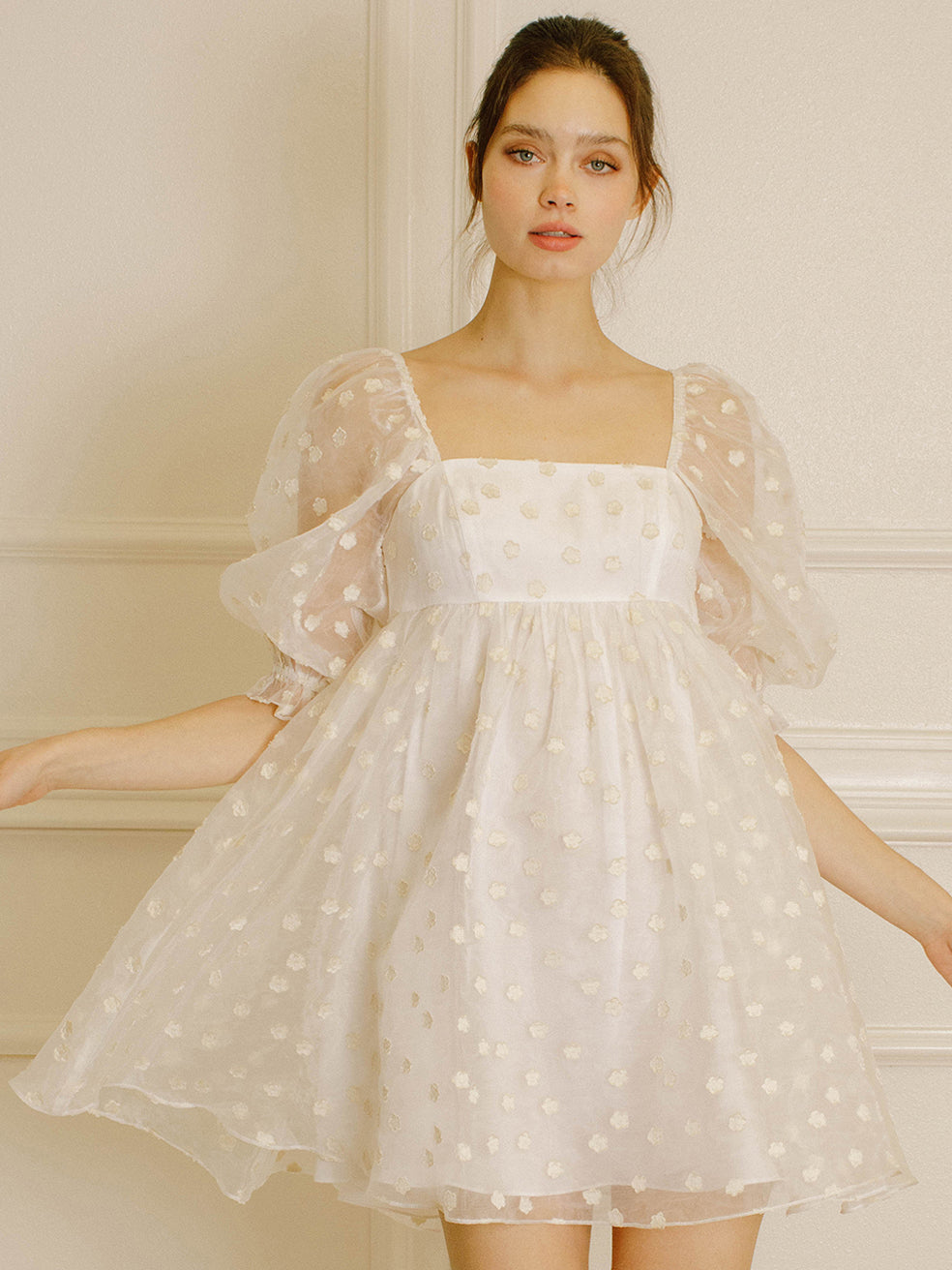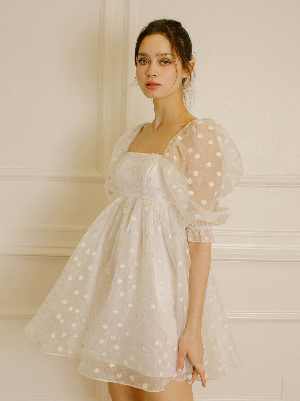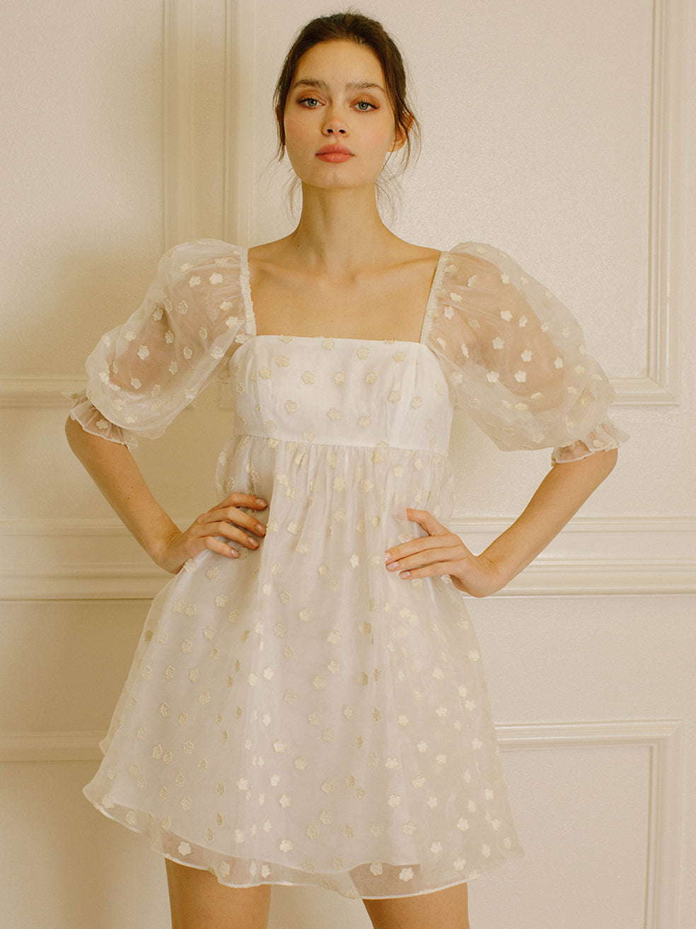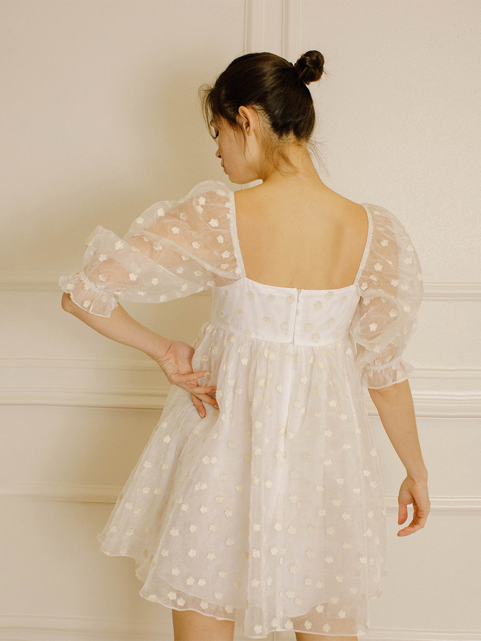 Feel flirty and fun in this Becca Cream Floral Print Mini Dress. With oversized 3/4 puffy sleeves and ruffled cuffs, plus a gathered empire waist and sheer mesh tulle, you'll love the look and feel of this one-of-a-kind dress. Perfect for special occasions with a touch of whimsy!