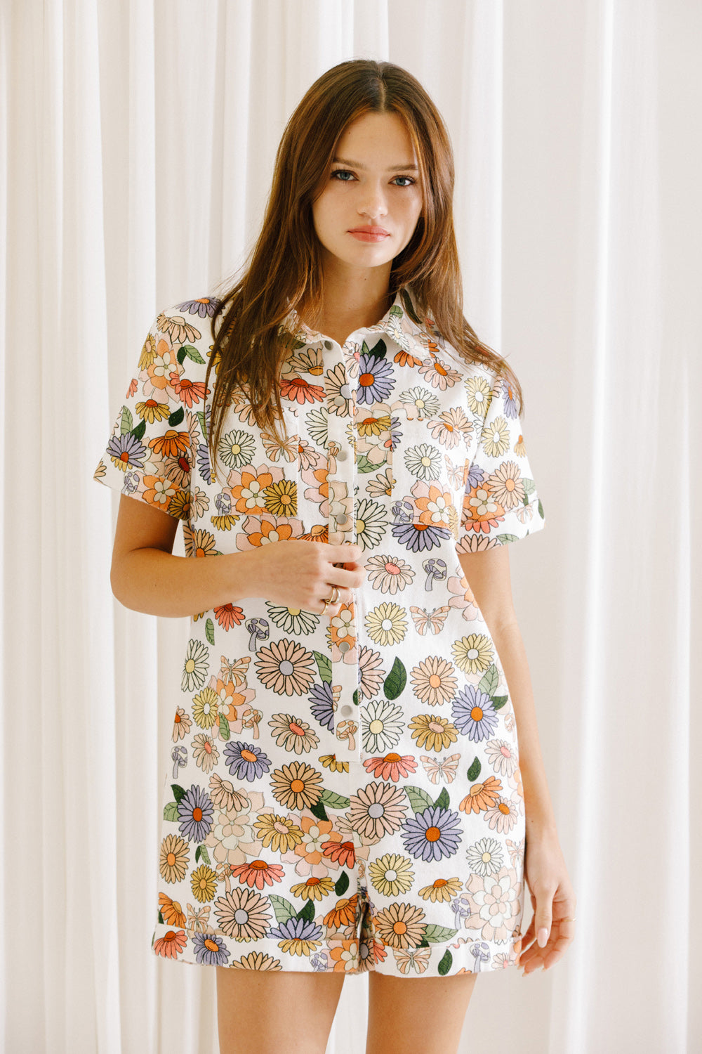 Stay comfy and fresh this season in our Desiree Butterfly Print Denim Romper.