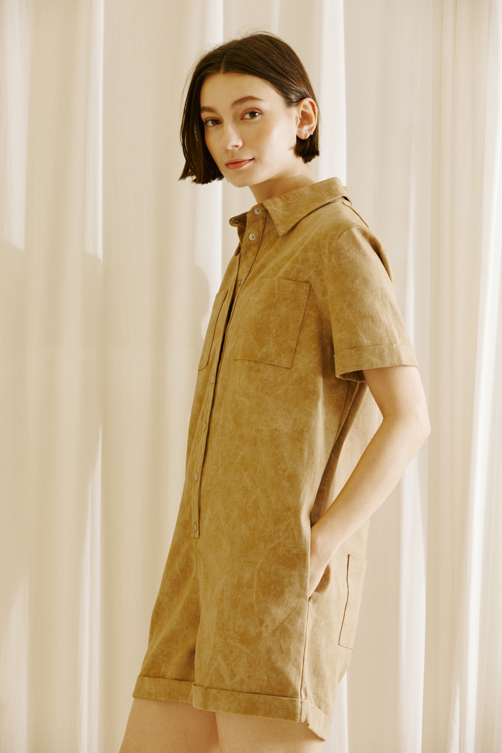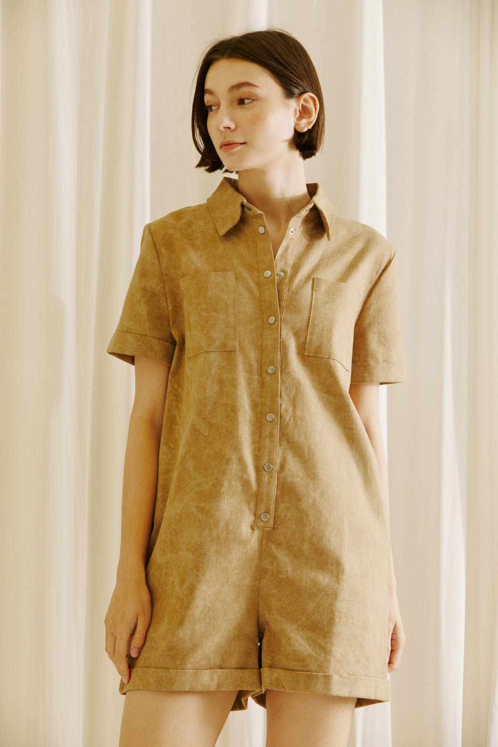 Stay comfy and fresh this season in our Simone Acid Wash Dye Denim Romper. Perfect for taking you from summer to fall.