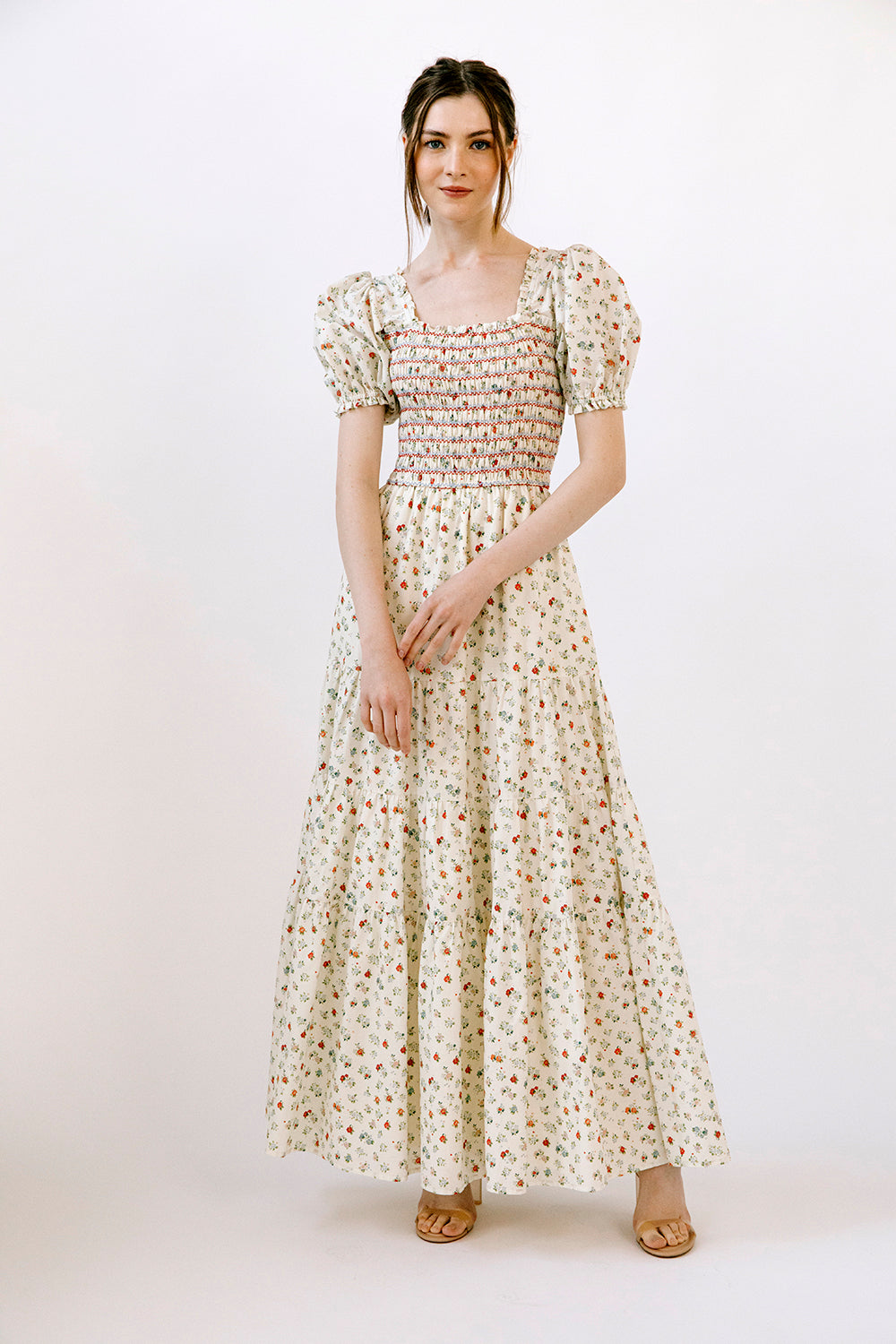 - Smocked upper body with red and baby blue stripe color block thread detail