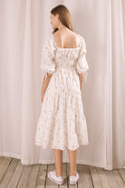 Look and feel fabulous in our Esther Bouquet Floral Print Midi Dress. The bouquet floral print and diamond fabric create a unique and eye-catching design, while the drawstring cuffs, gathering, and square neckline offer a flattering fit. Twirl your way through the day in this midi ruffled flowy bottom dress.