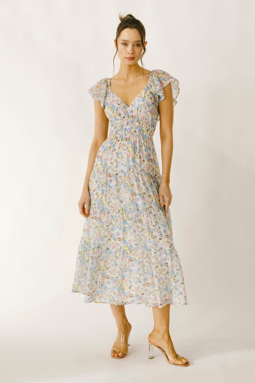 Romantic and breezy, the Sariah Flutter Midi Dress captures the essence of effortless femininity.