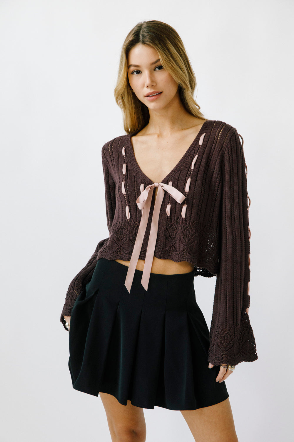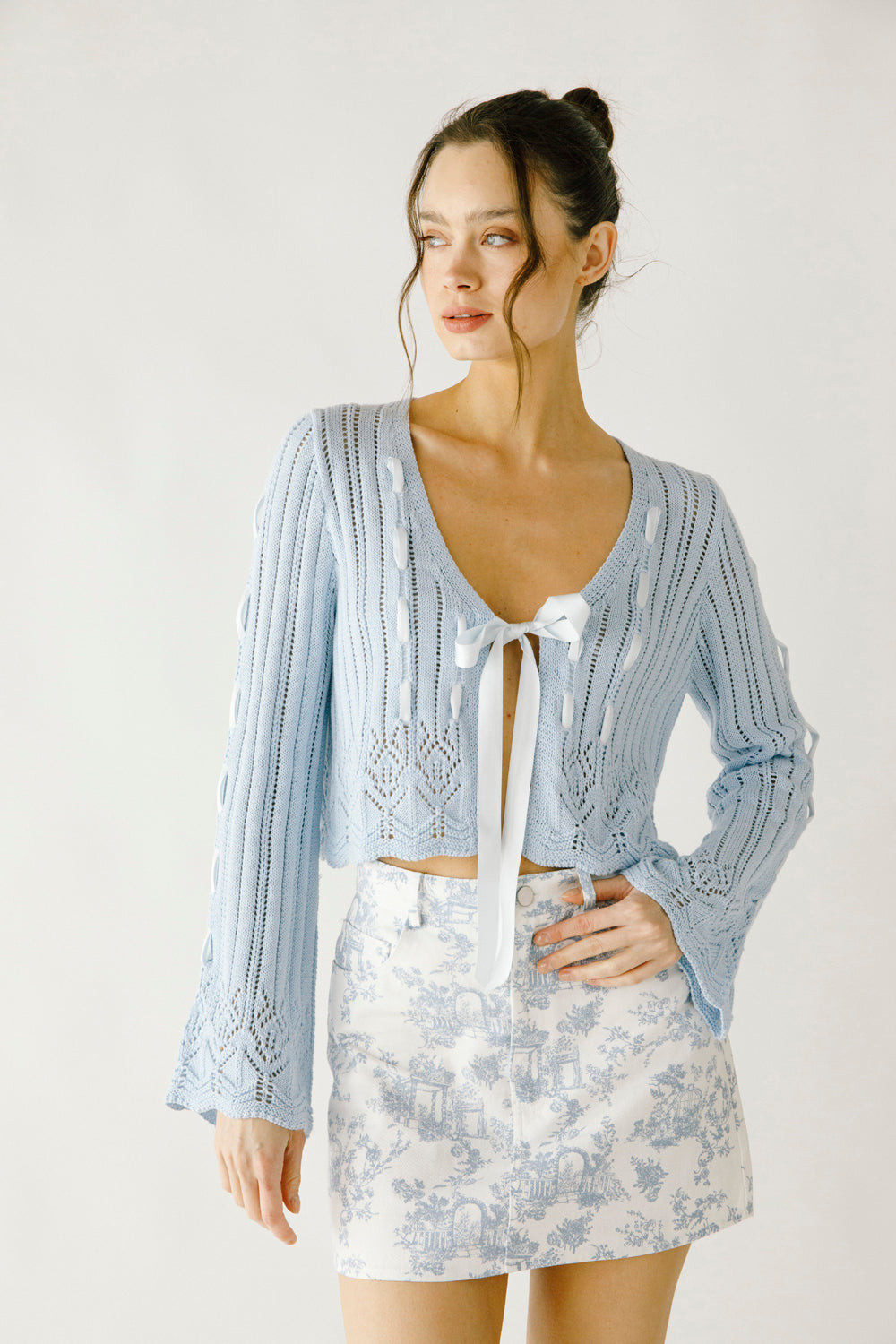 Soft, sweet, and full of charm, the Lila Ribbon Tie Knit Cardigan adds a romantic touch to your everyday look.