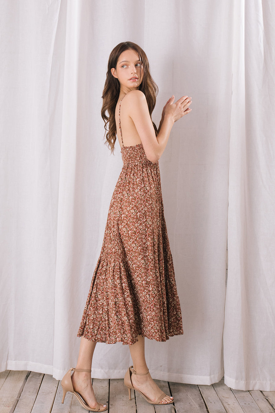 This maxi dress is the perfect choice for a fashionable look during summer months. It's designed with a flattering triangle top and smocked empire waist to create a slim silhouette. Its multi-floral pattern adds a bold statement to any occasion, while adjustable spaghetti straps make sure you get the perfect fit. Perfect for vacation or any other event.